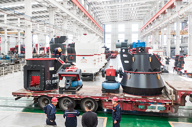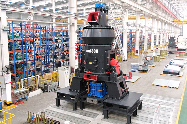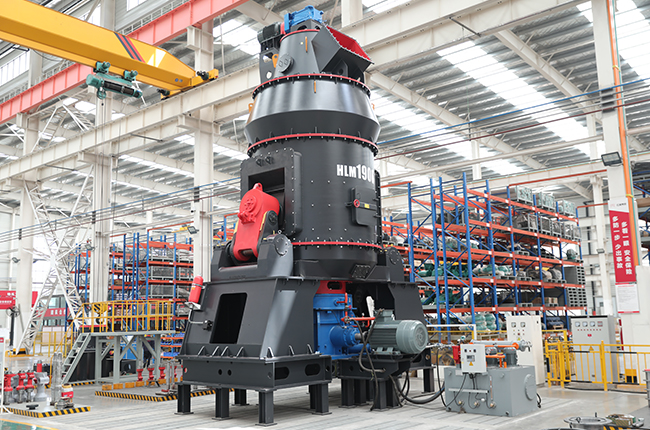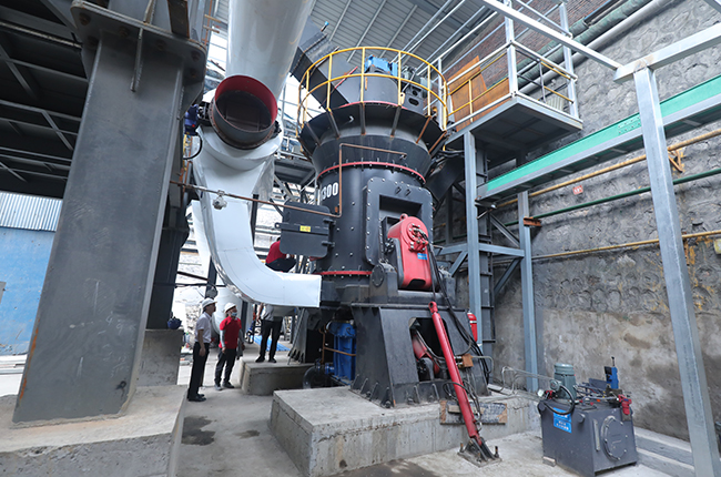 主電機(jī)通過(guò)減速機(jī)帶動(dòng)磨盤(pán)轉(zhuǎn)動(dòng),固定的磨輥沿磨盤(pán)滾道自轉(zhuǎn)。物料從下料口落在磨盤(pán)中央,在離心力的作用下,物料從磨盤(pán)中央向邊緣勻速移動(dòng),經(jīng)過(guò)粉磨滾道時(shí),受到磨輥的碾壓,碾磨力由液壓加載系統(tǒng)提供,大塊物料直接被壓碎,細(xì)粒物料受擠壓后形成料床進(jìn)行粒間粉碎。烘干與粉磨同時(shí)進(jìn)行,一次熱風(fēng)通過(guò)風(fēng)環(huán)均勻進(jìn)入磨盤(pán)周?chē)?,將?jīng)過(guò)輾磨從磨盤(pán)上切向甩出的粉碎物料烘干并輸送到上部選粉機(jī)處,在轉(zhuǎn)子葉片的作用下,粗顆粒重新回到磨盤(pán)上粉磨(內(nèi)循環(huán)),合格的細(xì)粉隨氣流一起出磨,被系統(tǒng)集粉器收集,即為成品;少部分難粉碎且一次風(fēng)吹不起的較大顆粒、雜質(zhì)等通過(guò)風(fēng)環(huán)跌落至磨機(jī)下部一次風(fēng)室被刮料裝置排出機(jī)外,或經(jīng)輸送設(shè)備由進(jìn)料口進(jìn)入立磨重新粉磨(外循環(huán))。